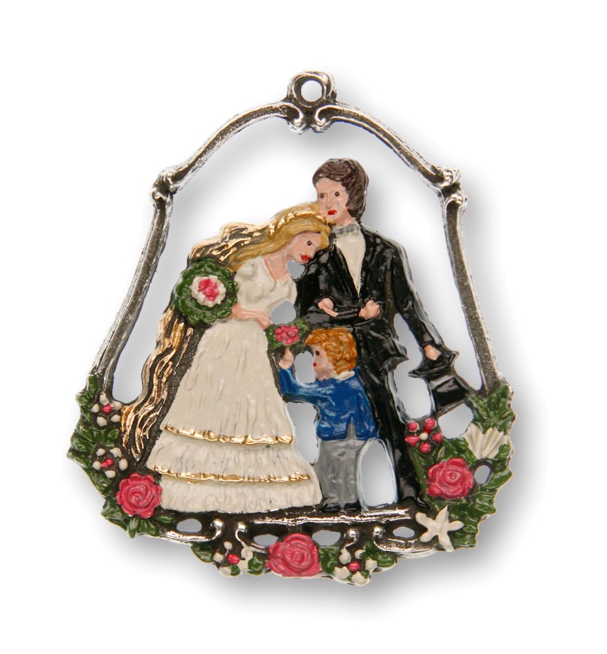 Zinnfigur Hochzeitspaar mit Blumenkind einseitig, H: 5,5 cm
