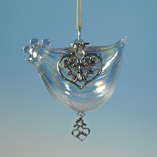 Glas-Henne mit Zinndekor antik, LxBxH: ca. 9,7 x 5,3 x 7,7 cm