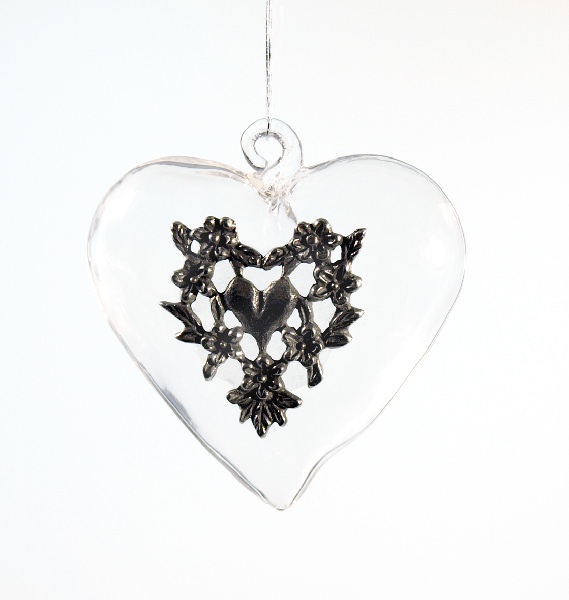Glasherz klein mit Zinndekor Herz antik, 5,1 x 5,3 x 1,8 cm
