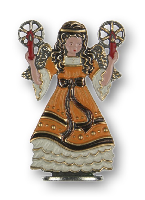Zinnfigur Engel gelb mit 2 Kerzen zum Stellen doppelseitig, H: 7,5 cm