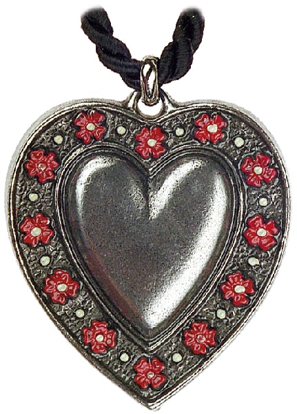 Sie sind hier: Werbemittel123.de » Werbemittel aus Zinn » Mode-Accessoires Halsschmuck Blumenherz rot Halsschmuck Blumenherz rot, Zinn 93%, H: 5,0 cm