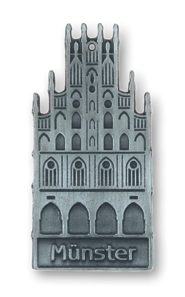 Städtemotiv "Münster-Rathaus" antik, einseitig, H: 8,5 cm (ab 100 Stück - auch mit anderem Städtemotiv möglich)