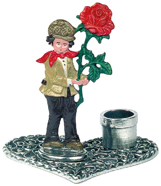 Leuchter Filigranherz Junge mit Rose, Zinn 93%, H: 7,0 cm