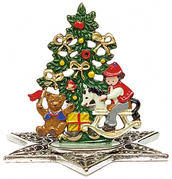 Leuchter Filigranstern Christbaum mit Schaukelpferd, Zinn 93%, H: 6,0 cm