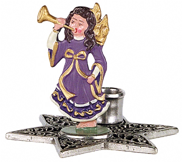 Leuchter Filigranstern Engel mit Posaune, Zinn 93%, H: 5,5 cm