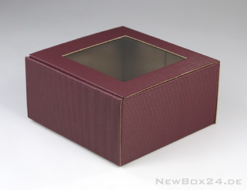 Klappdeckelbox 221-03 - 300 x 300 x 110 mm (LxBxH), mit Sichtfenster, Material Wellpappe E-Welle offen, Lieferung ungefaltet