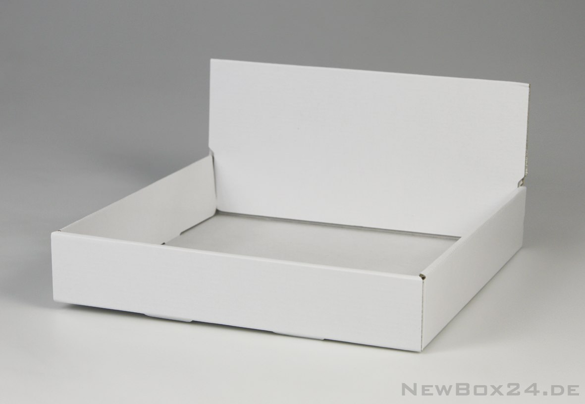 Display 651 in Größe 02 - 260 x 260 x 50 mm (Innenmaße), Wellkarton glatt in Standardfarbe weiß (Farben gegen Aufpreis möglich), Lieferung ungefaltet