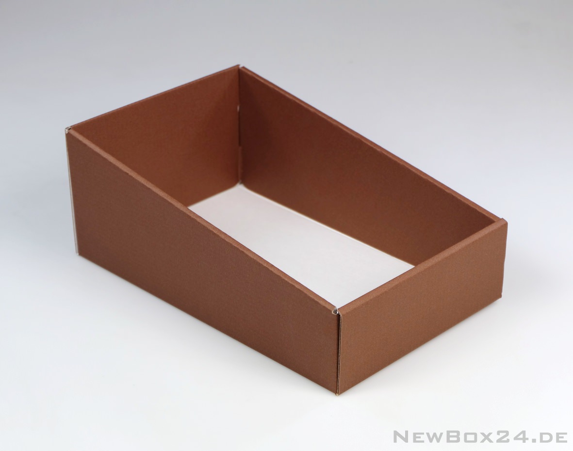 Display 655 in Größe 03 - 250 x 155 x 100/60 mm (Innenmaße), Wellkarton glatt in Standardfarbe weiß (Farben gegen Aufpreis möglich), Lieferung ungefaltet
