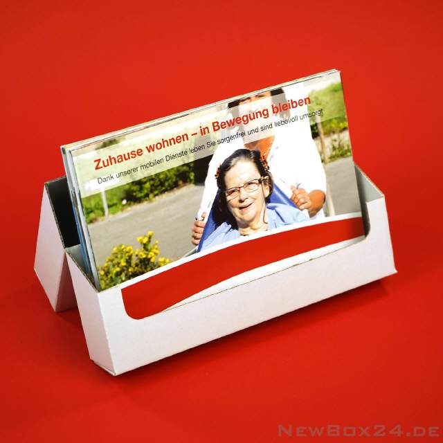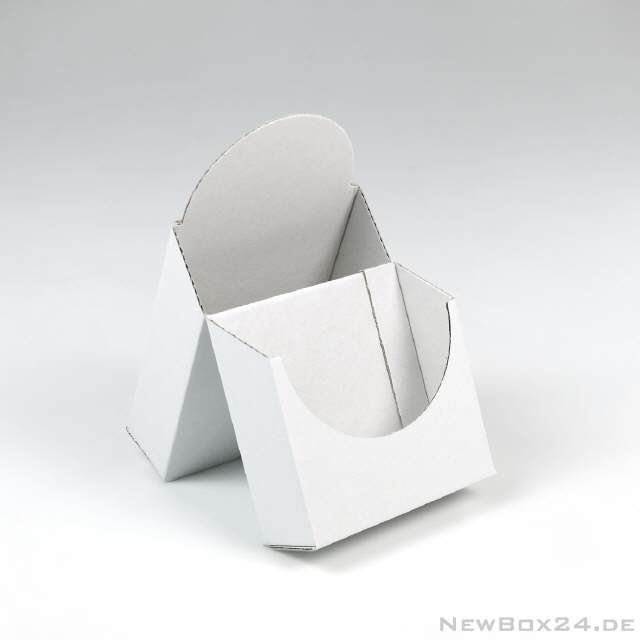 Prospektständer 656-07 - 210 x 148 x 35 mm (Innenmaße - für DIN A5 Quer), Wellkarton glatt in Standardfarbe weiß (Farben gegen Aufpreis möglich), Lieferung ungefaltet