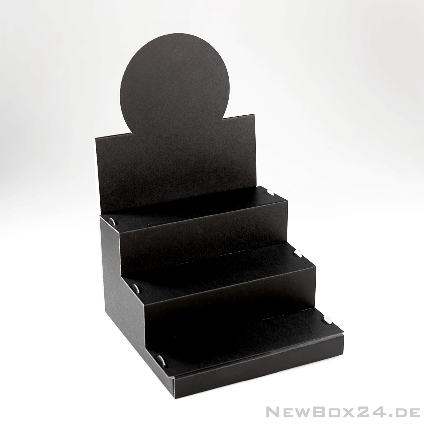 Treppendisplay 658 in Größe 03 - 245 x 245 x 380 mm (Innenmaße - aufgefaltet), Wellkarton glatt in Standardfarbe weiß (Farben gegen Aufpreis möglich), Lieferung ungefaltet