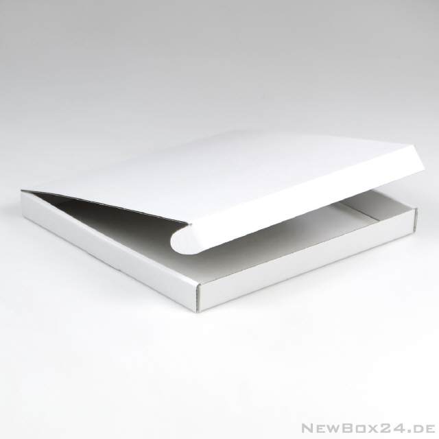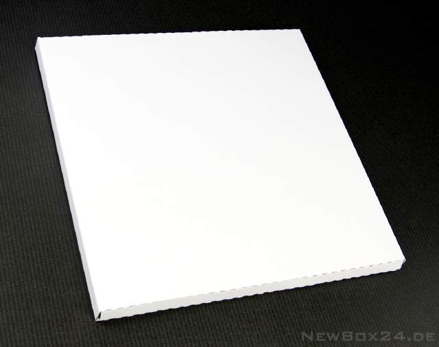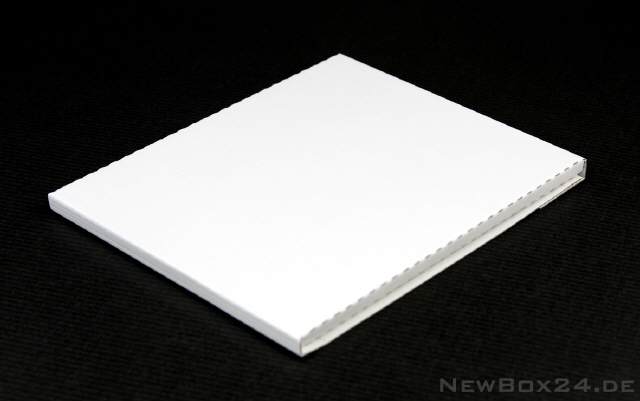 Klappdeckelbox 216 - 190 x 160 x 45 mm (Querformat - Innenmaße), Wellkarton glatt in Standardfarbe weiß (Farben gegen Aufpreis möglich), Lieferung ungefaltet
