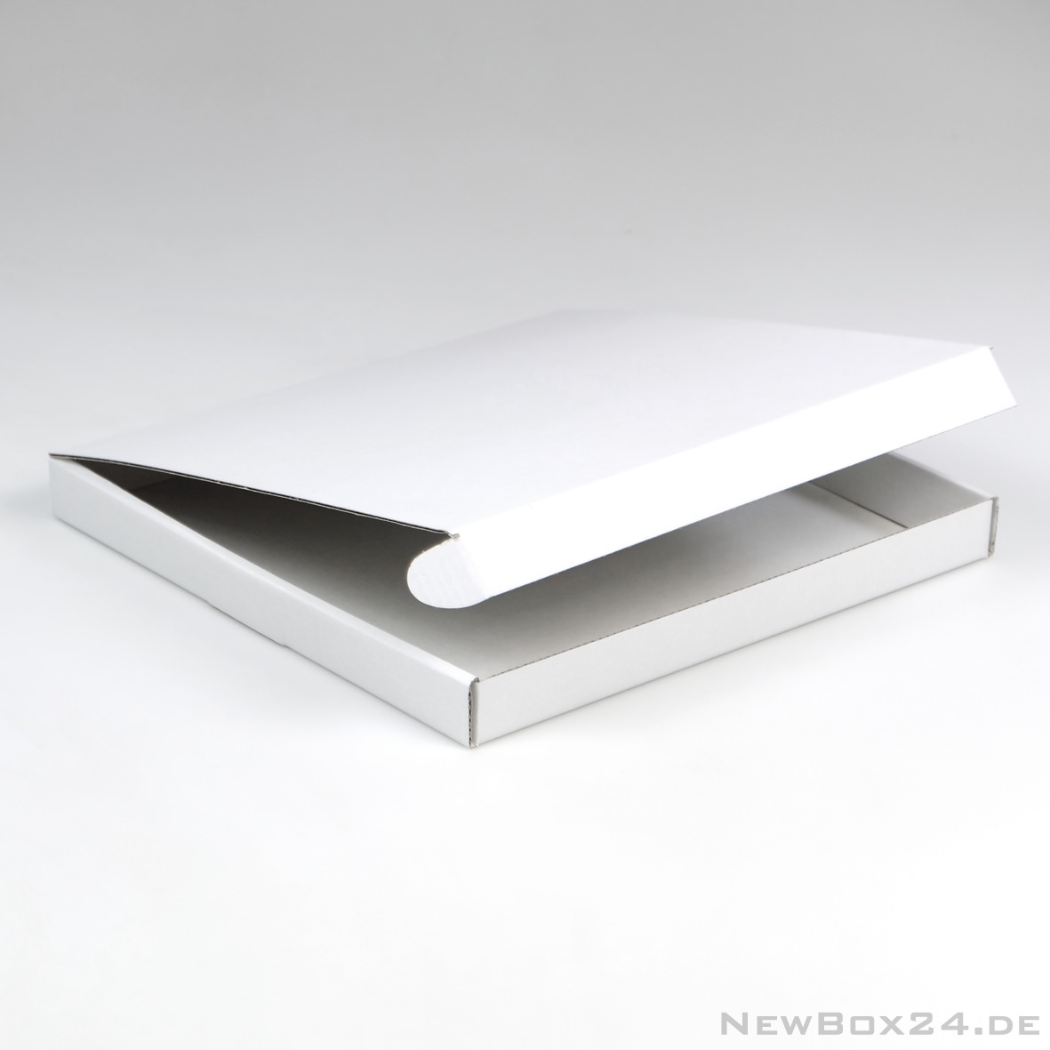 Klappdeckelbox 212 - 260 x 260 x 25 mm (Innenmaße), Wellkarton glatt in Standardfarbe weiß (Farben gegen Aufpreis möglich), Lieferung ungefaltet
