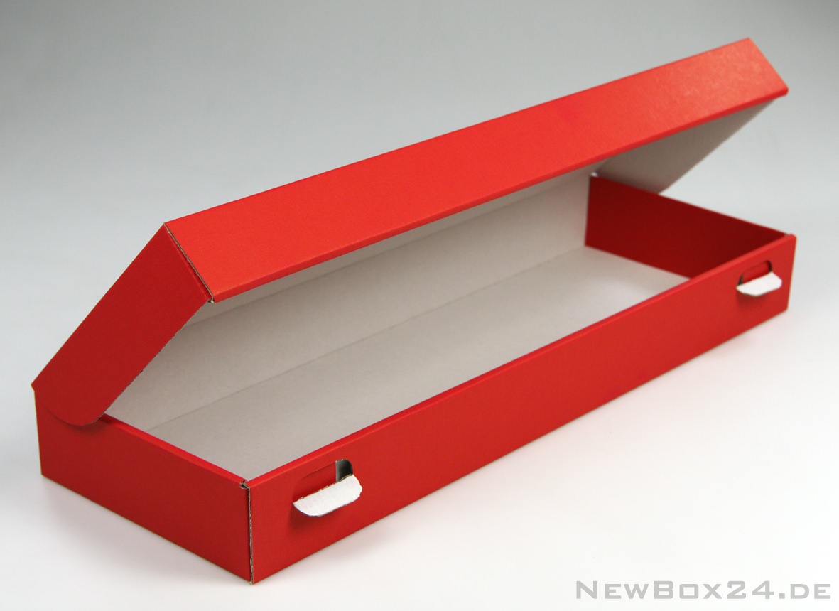 Klappdeckelbox 216 - 450 x 150 x 50 mm (Innenmaße), Wellkarton glatt in Standardfarbe weiß (Farben gegen Aufpreis möglich), Lieferung ungefaltet