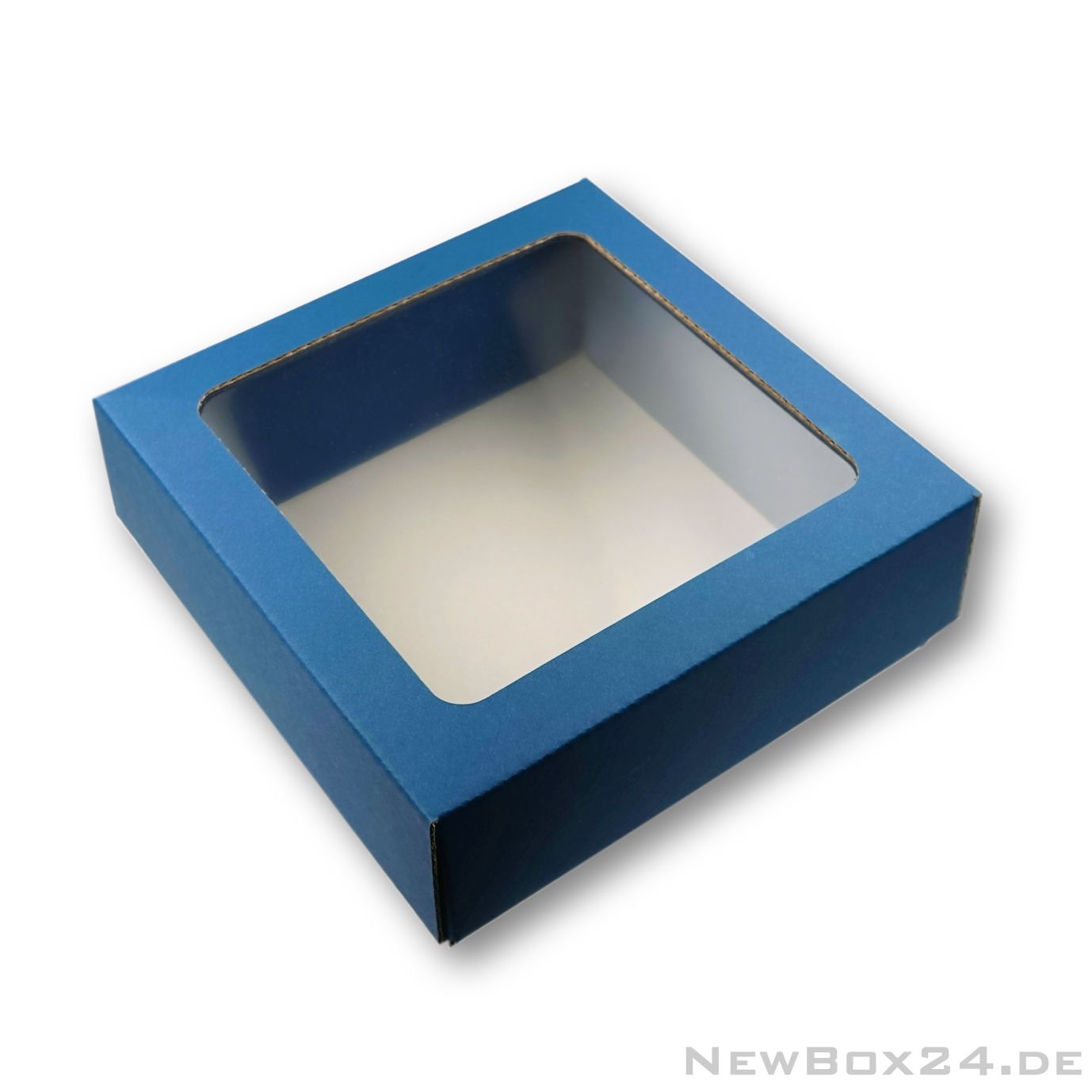 VARIO COLOR Stülpdeckelbox 415 - 155 x 155 x 60 mm (Innenmaße), inklusive Klarsichtfenster zum Einlegen, Wellkarton glatt in Standardfarbe nach Wahl (auch Boden und Deckel unterschiedlich ohne Mehrpreis), Lieferung ungefaltet