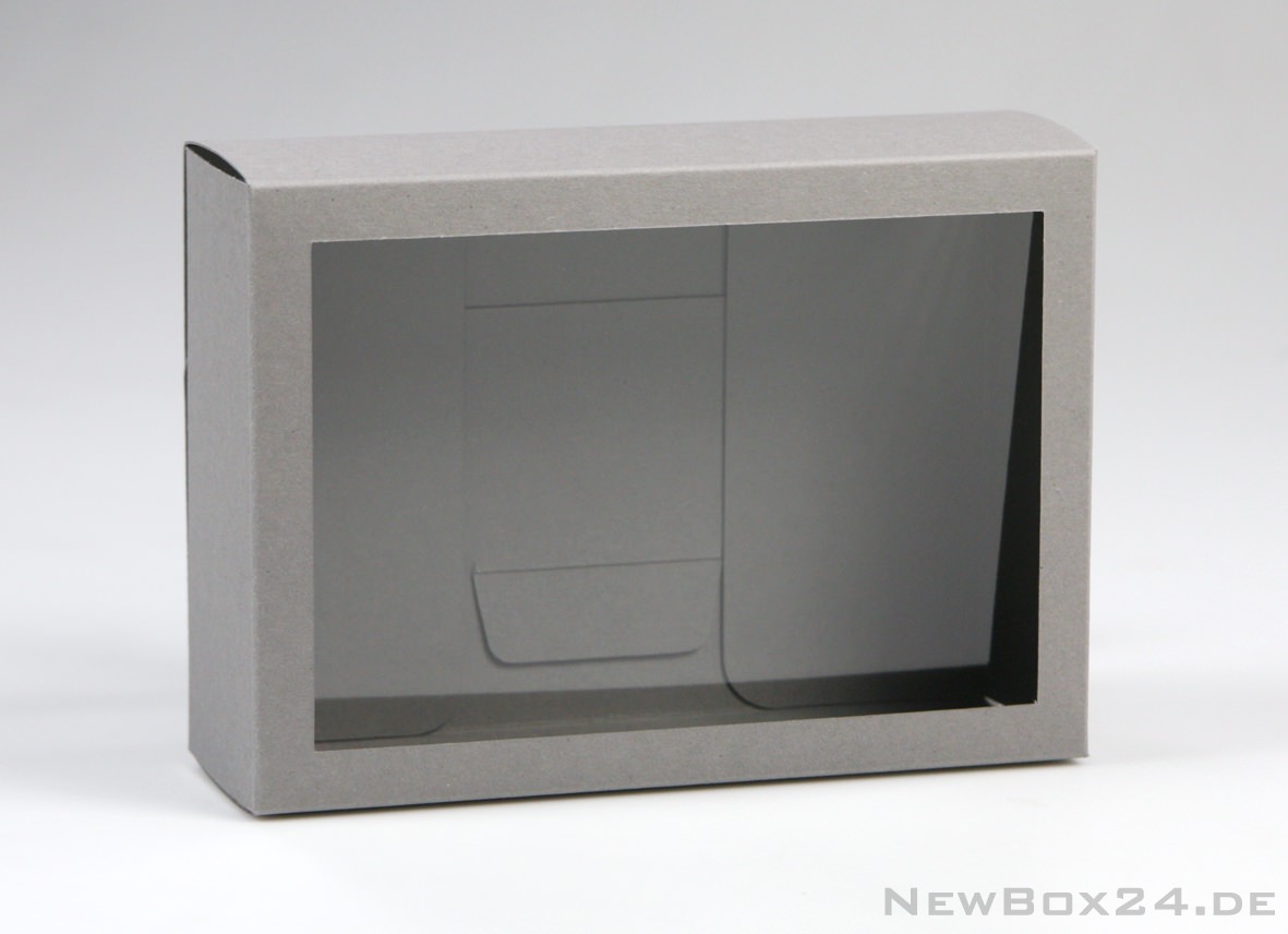 Postkartenverpackung DIN A6, 150 x 107 x 50 mm (LxBxH) mit Fensterausschnitt und Klarsichtfolie, Karton in Standardfarbe nach Wahl (gold, silber, dekor gegen Aufpreis möglich), Lieferung ungefaltet, Klarsichteinlage separat
