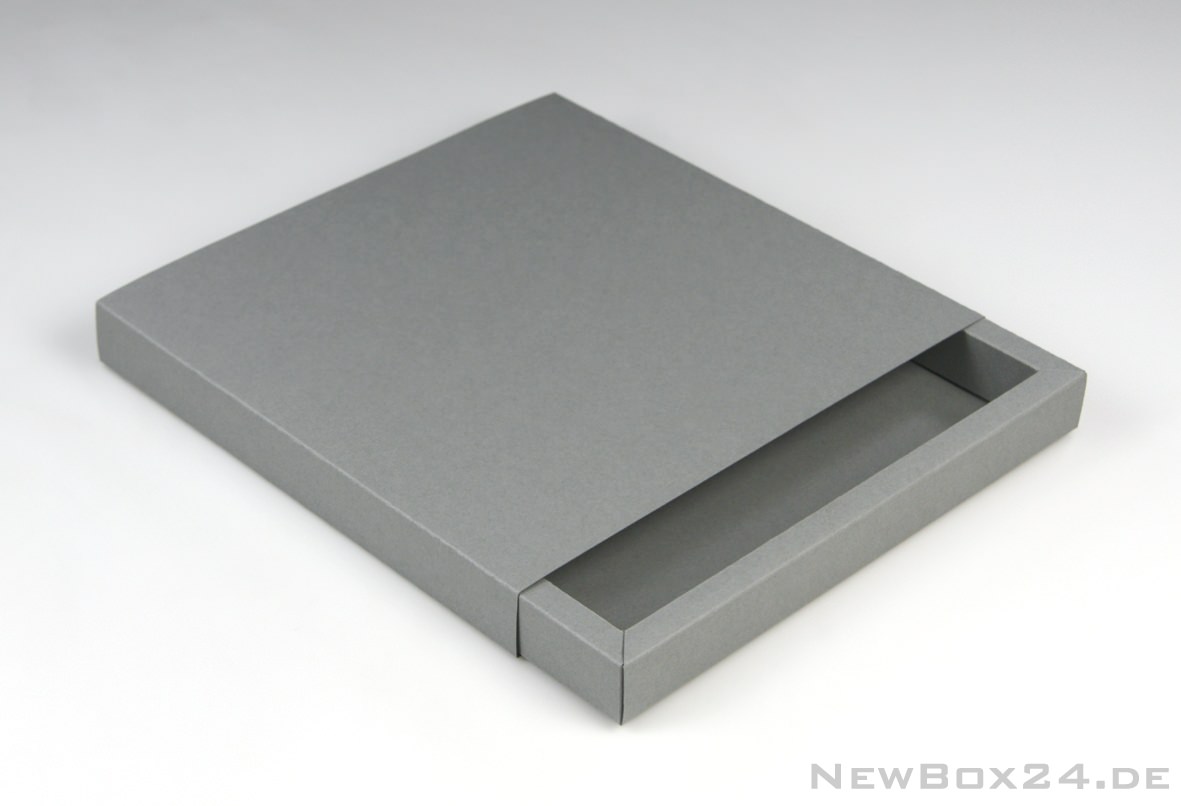 Schiebe-Geschenkbox 210 x 210 x 25 mm (Innenmaße), Karton in Standardfarbe nach Wahl (gold, silber, dekor gegen Aufpreis möglich), Lieferung komplett gefaltet
