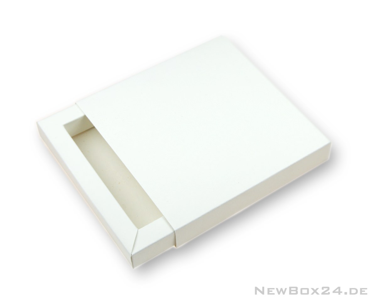 Schiebe-Geschenkbox 90 x 90 x 15 mm (Innenmaße), Karton in Standardfarbe nach Wahl (gold, silber, dekor gegen Aufpreis möglich), Lieferung komplett gefaltet