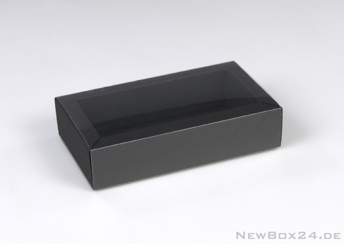 Schiebe-Geschenkbox mit Klarsichthülle 02 - 120 x 59 x 32 mm (Innenmaße), Karton in Standardfarbe nach Wahl (gold, silber, dekor gegen Aufpreis möglich), Schiebehülle Kunststoff transparent, Lieferung komplett gefaltet