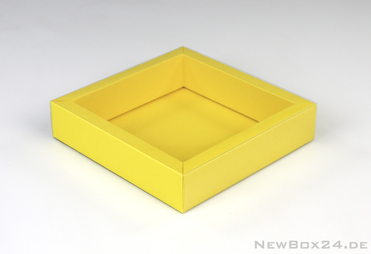 Schiebe-Geschenkbox mit Klarsichthülle 05 - 126 x 124 x 32 mm (Innenmaße), Karton in Standardfarbe nach Wahl (gold, silber, dekor gegen Aufpreis möglich), Schiebehülle Kunststoff transparent, Lieferung komplett gefaltet