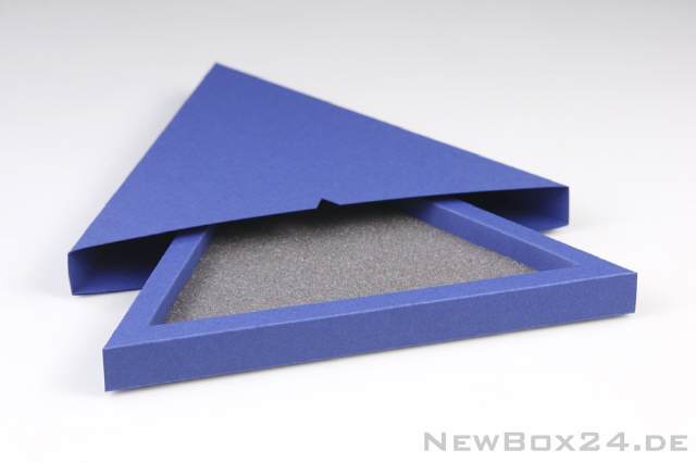 Schmuckverpackung Dreieck, Seitenlänge innen 200 mm, Karton in Standardfarbe nach Wahl (gold, silber, dekor gegen Aufpreis möglich), inklusive Schaumstoffeinlage 10 mm, Lieferung komplett gefaltet