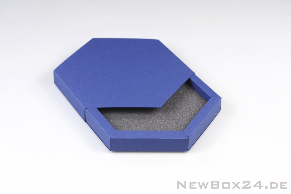 Schmuckverpackung Sechseck, Ø innen 140 mm, Karton in Standardfarbe nach Wahl (gold, silber, dekor gegen Aufpreis möglich), inklusive Schaumstoffeinlage 10 mm, Lieferung komplett gefaltet