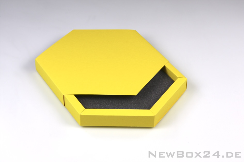 Schmuckverpackung Sechseck, Ø innen 160 mm,Karton in Standardfarbe nach Wahl (gold, silber, dekor gegen Aufpreis möglich), inklusive Schaumstoffeinlage 10 mm, Lieferung komplett gefaltet