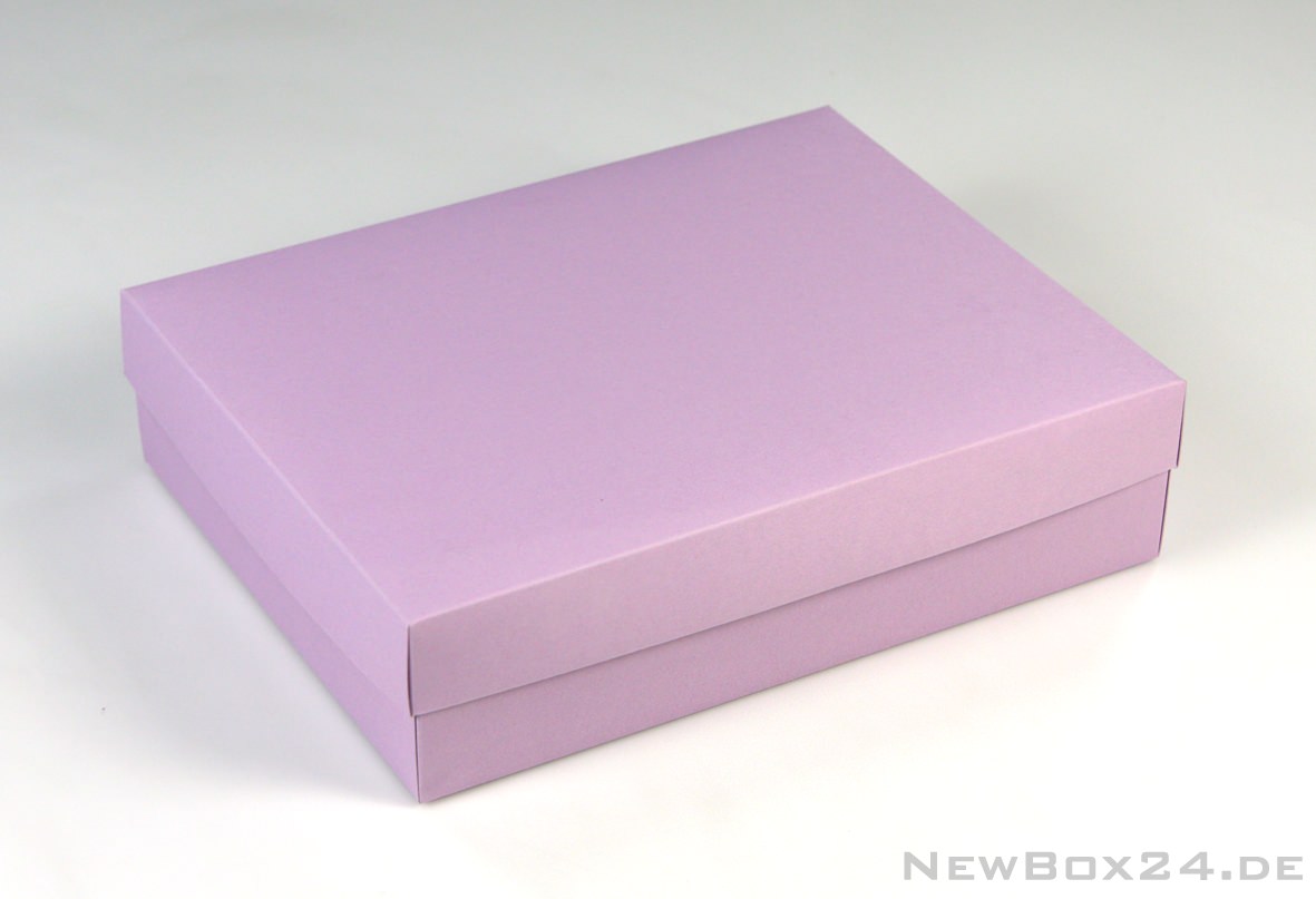 Stülpdeckel-Geschenkbox 245 x 190 x 60 mm (Innenmaße), Karton in Standardfarbe nach Wahl (gold, silber, dekor gegen Aufpreis möglich), Lieferung komplett gefaltet