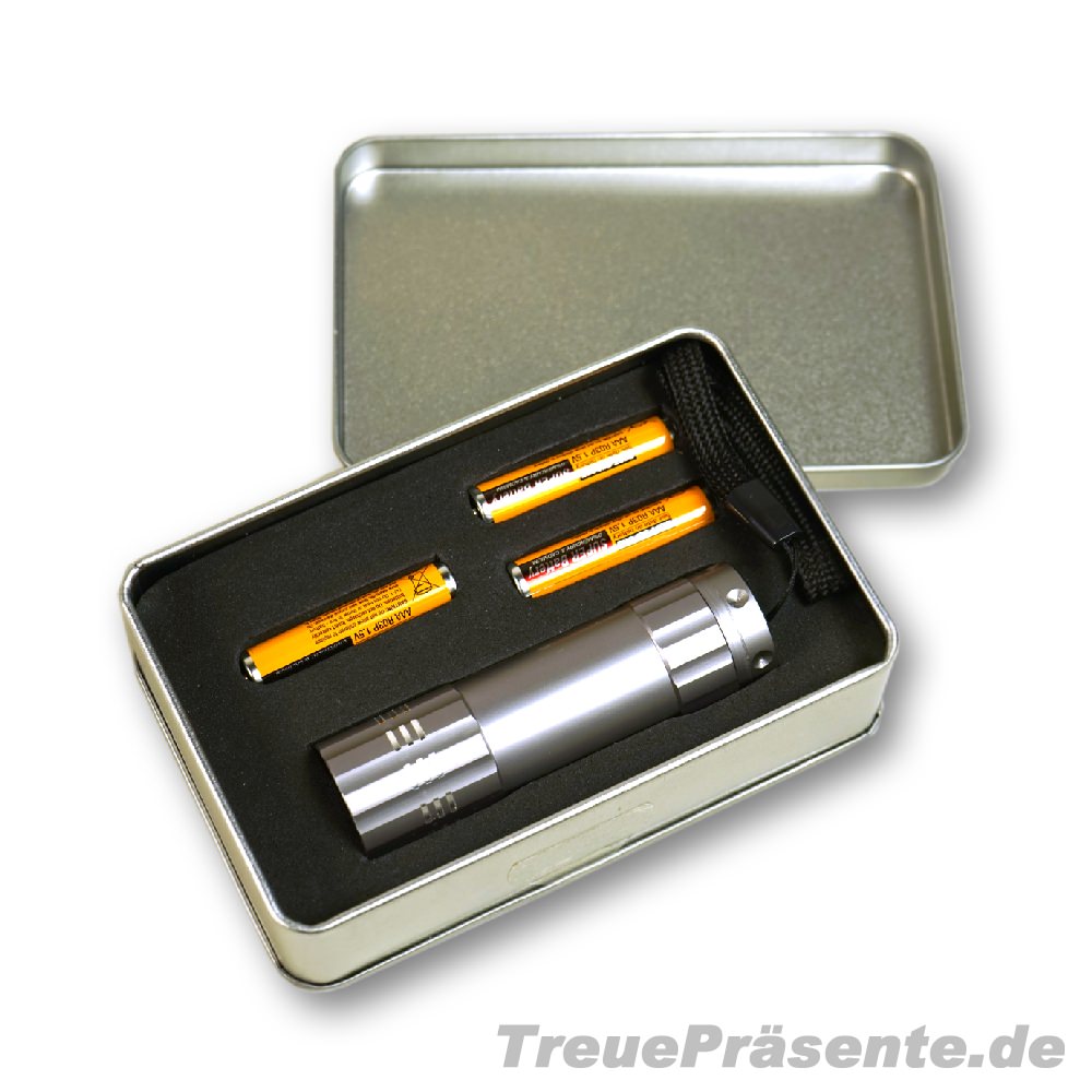 Taschenlampe mit 9 LED, in Metall-Dose inkl. Batte