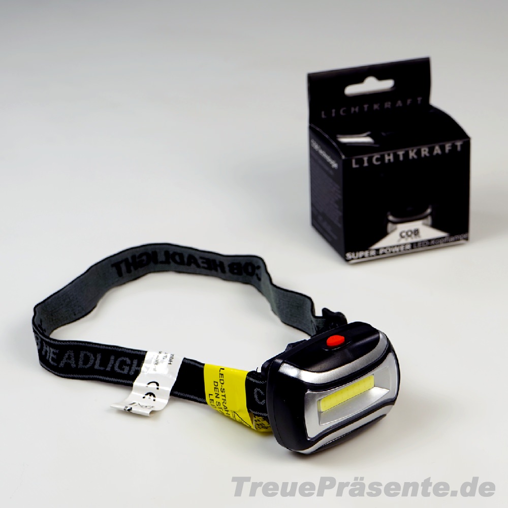 Kopflampe silber/schwarz, LED extra-hell, 3 Watt, 6,5 x 5 x 3 cm, Lieferung inkl. Batterien