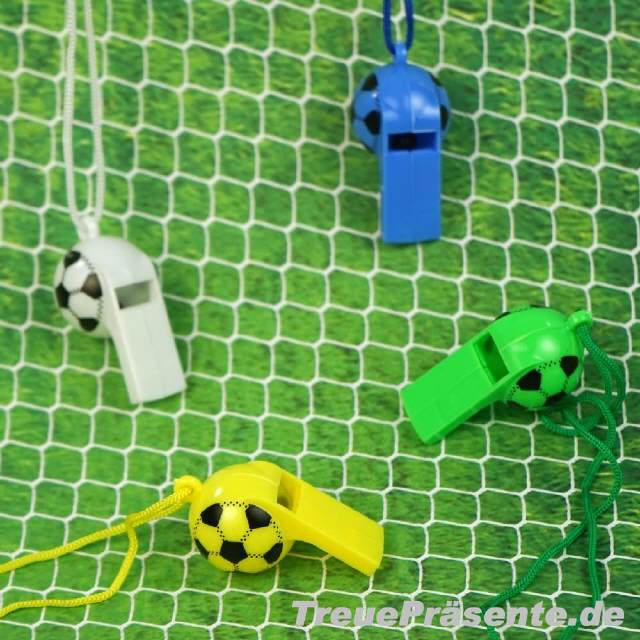 Fußball-Trillerpfeife 5 cm, mit Halskordel, farbli