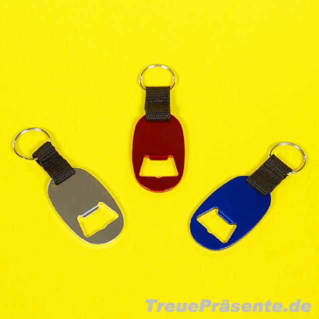 Schlüsselanhänger Flaschenöffner aus Aluminium, ca. 10 cm, farblich sortiert