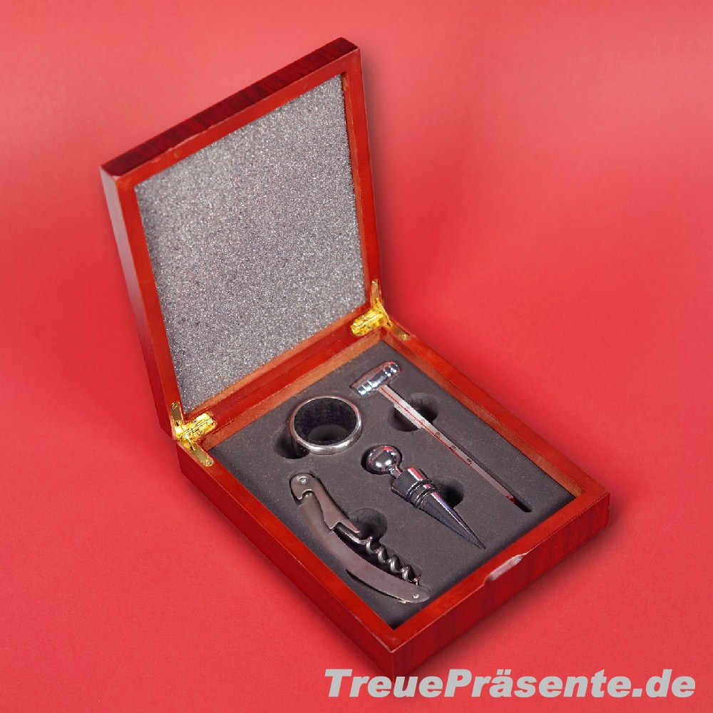 Sie sind hier: Werbemittel123.de » Kundengeschenke » Haushalt Weinset 4-teilig in Schatulle ca. 18 x 14,5 cm Weinset 4-teilig in Schatulle ca. 18 x 14,5 cm