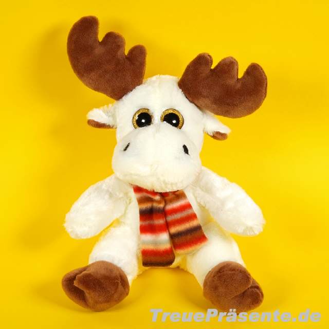 Elch mit Schal und Glitzer-Augen, sitzend ca. 25 cm mit Geweih