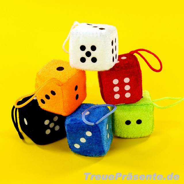 Plüschwürfel gepunktet am Band 4 cm, farblich sortiert