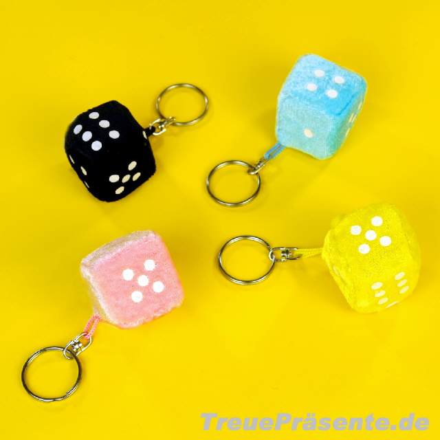 Schlüsselanhänger Plüsch-Würfel, 3,5 cm, farblich sortiert