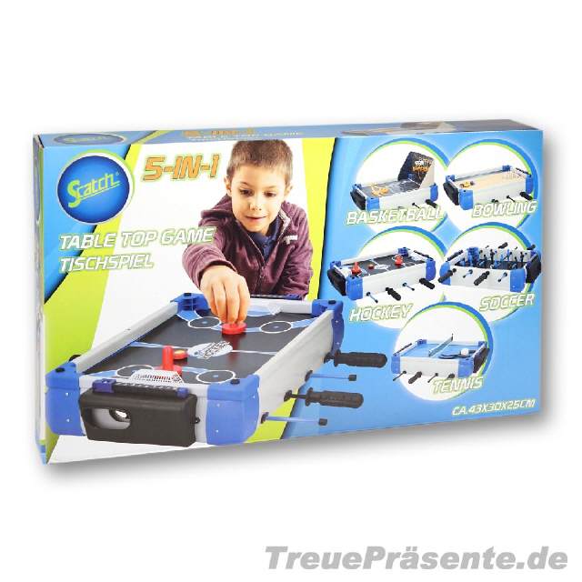 Action-Tischspiel 5-in-1, ca. 43 x 30 cm, inkl. Basketball, Bowling, Hockey, Fußball und Tennis