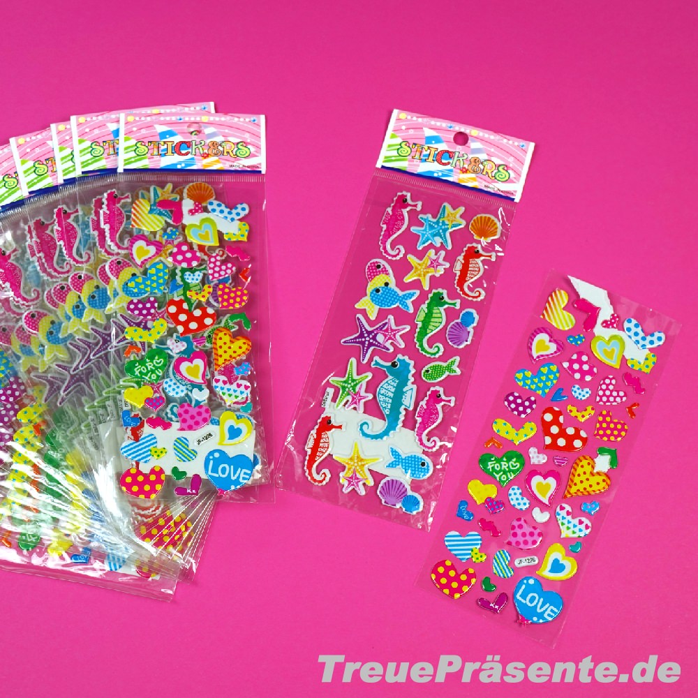 Aufkleber-Bogen/Sticker Herzen und Meerestiere, sortiert