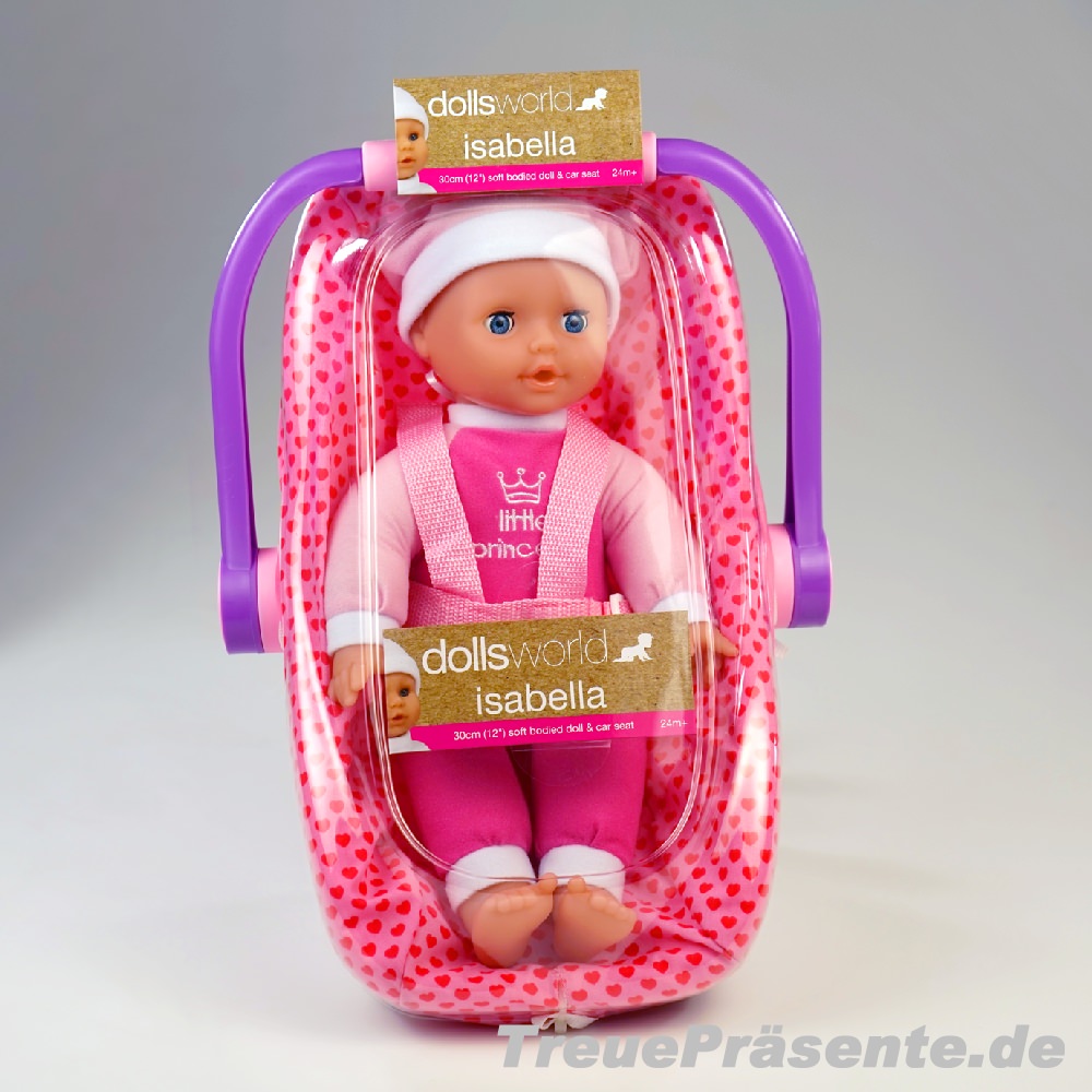 Sie sind hier: Werbemittel123.de » Kundengeschenke » Spielwaren Babypuppe mit Autositz Babypuppe mit Autositz