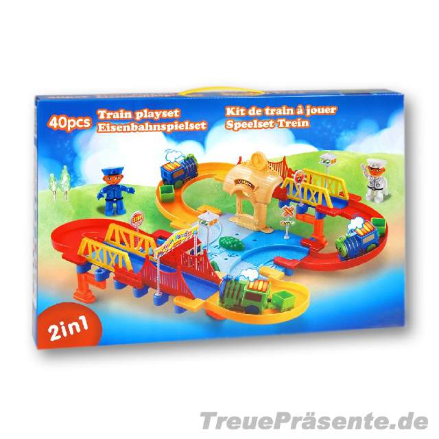 Eisenbahn-Spielset 2in1, 40-teilig, aufgebaut ca. 43 x 35 cm, Lieferung ohne Batterie