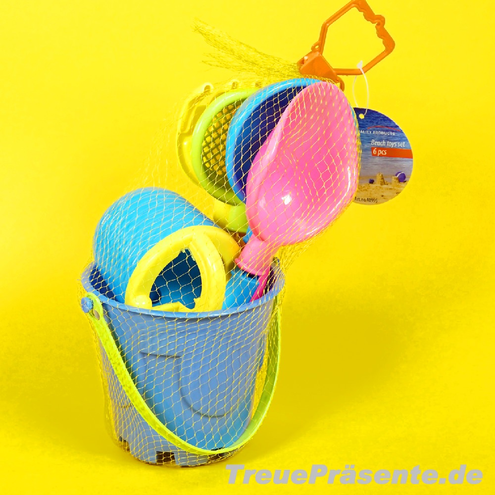 Sandspielzeug im Eimer 6-teilig, farblich sortiert