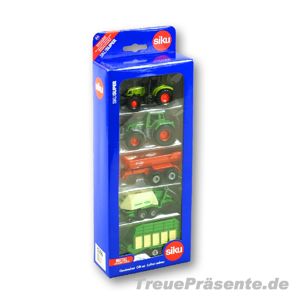 Spielzeugauto-Geschenkset Siku, Traktoren mit Anhängern, Metall, 5-teilig, ca. 9 cm