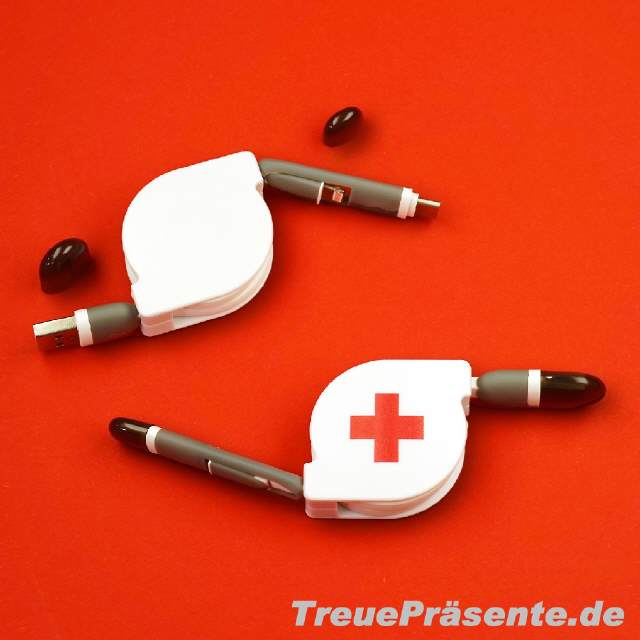 3 in 1 Ladekabel mit Aufroller weiß/grau, ca. 1 m langes Ladekabel, inklusive individuellem Druck