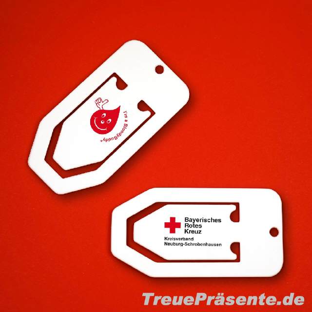 Briefklammer weiß, ca. 13 x 7 cm, inklusive individuellem Druck