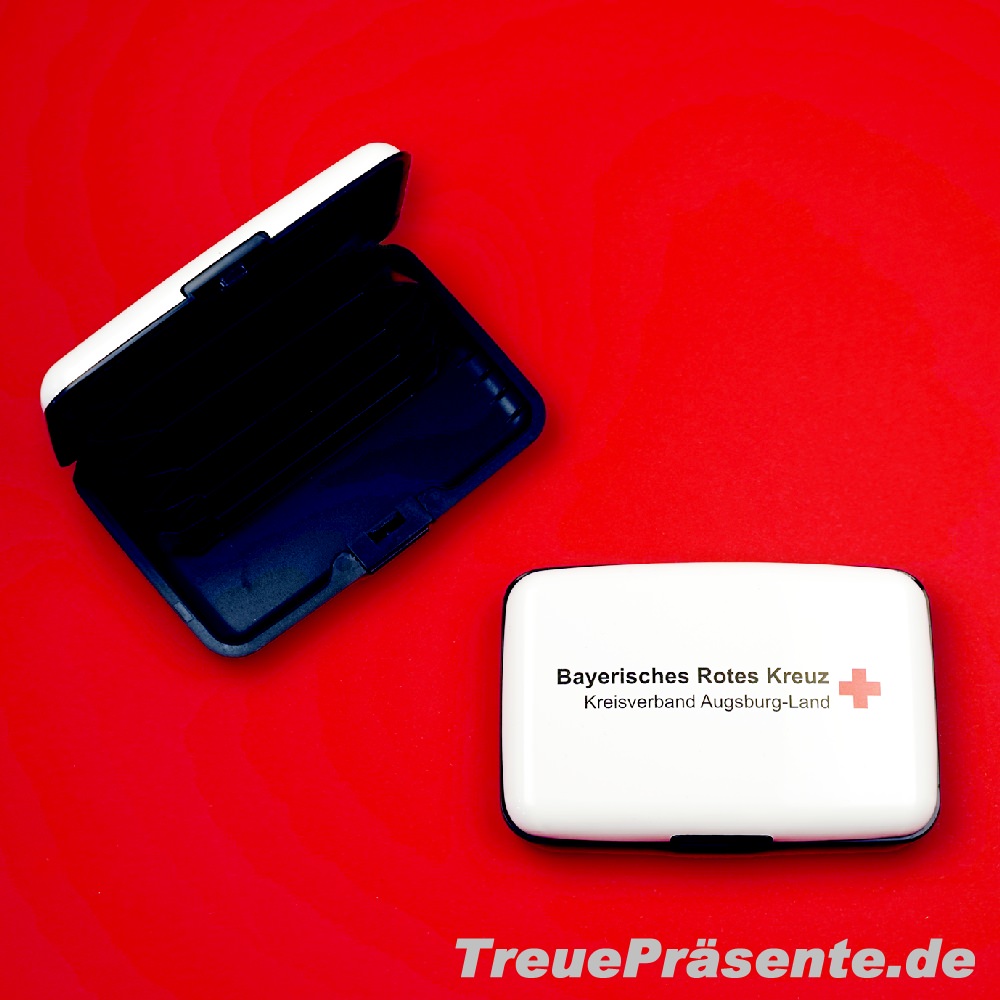 Kartenetui mit RFID Ausleseschutz weiß/schwarz, ca. 11 x 7,5 x 2 cm, inklusive individuellem Druck