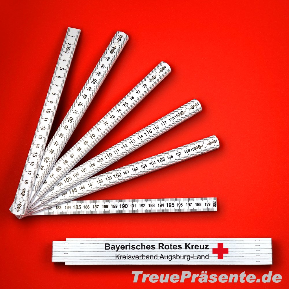 Meterstab/Zollstock, Länge 2 m, aus Kunststoff weiß, inklusive individuellem Druck