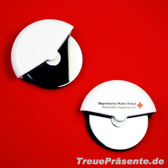 Pizzaschneider weiß, ca. 7 cm, inklusive individuellem Druck
