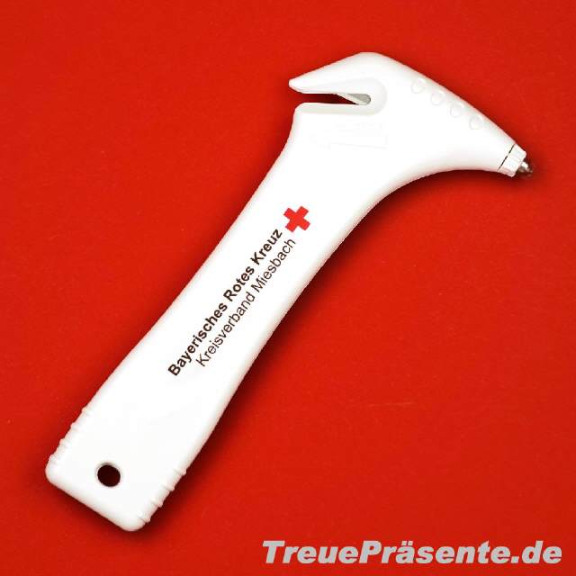 Rettungshammer mit Gurtschneider weiß, ca. 14 cm, inklusive individuellem Druck
