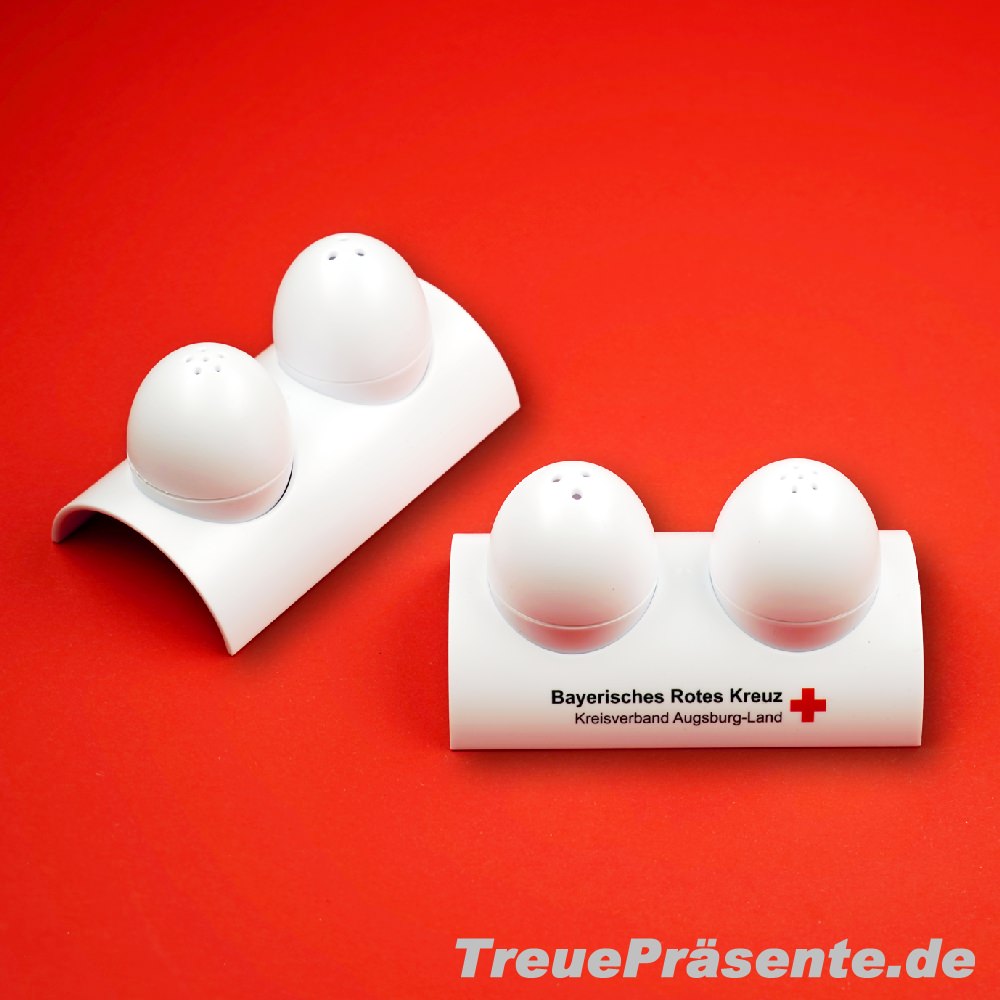 Salz- und Pfefferstreuer weiß, ca. 9,7 x 5,5 cm, inklusive individuellem Druck