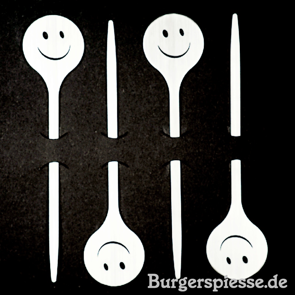 Burgerspieße 201 mit Ausstanzung Gesicht 4er-Geschenkset - 4 Hamburgerspieße aus Edelstahl, je ca. 155 x 35 x 1,5 mm, in Geschenk-Verpackung (Standard-Farbe nach Wahl)