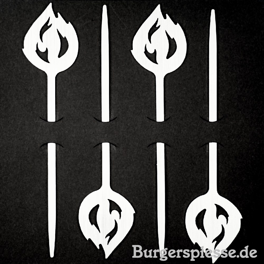 Burgerspieße 203 mit Ausstanzung Flamme 4er-Geschenkset - 4 Hamburgerspieße aus Edelstahl, je ca. 170 x 37 x 1,5 mm, in Geschenk-Verpackung (Standard-Farbe nach Wahl)